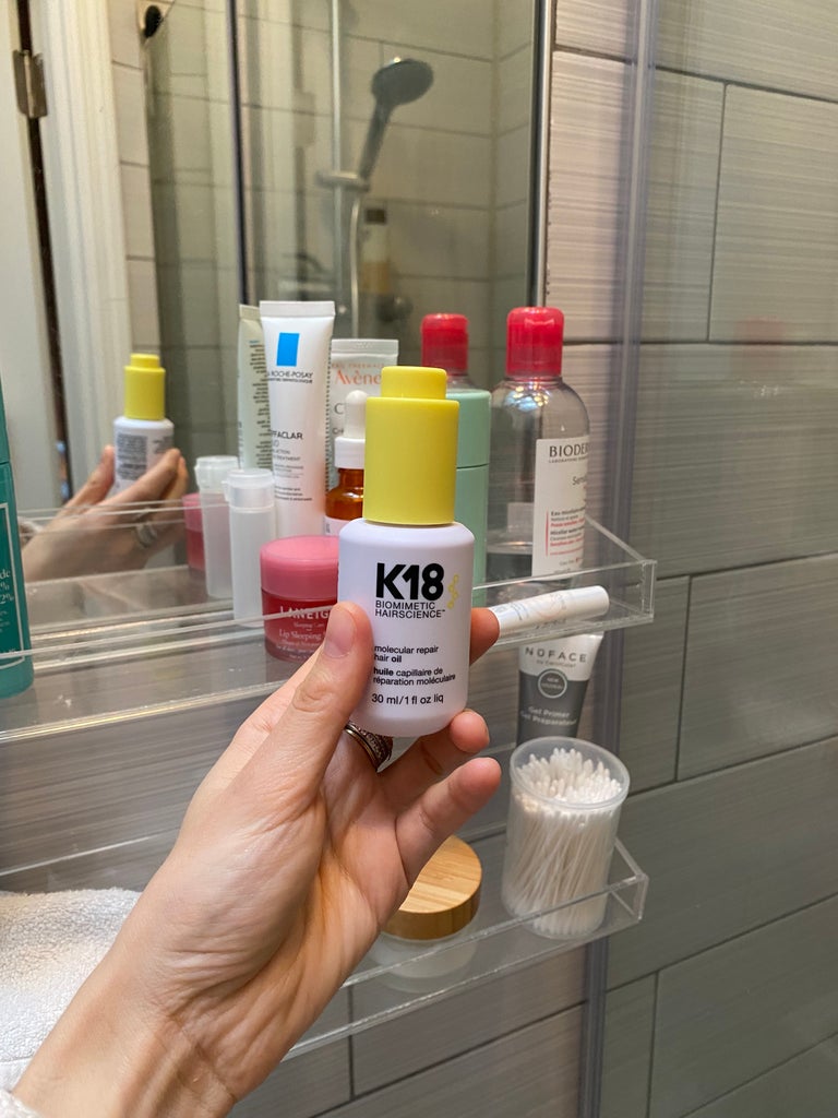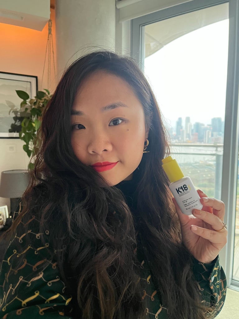 “Several friends of mine swear by the brand’s signature treatment — if I had a nickel for every time I’ve seen K18 name-checked by salon colorists for maintaining hair health during major color services, like bleaching. While my brunette highlights are very low maintenance (which is just how I like it), I’ve been on a hair growth journey as of the past few months, and K18’s hero ingredient, a proprietary peptide complex that helps reverse damage, is rumored to be liquid gold for your strands. Needless to say, I was excited to try this stuff out.